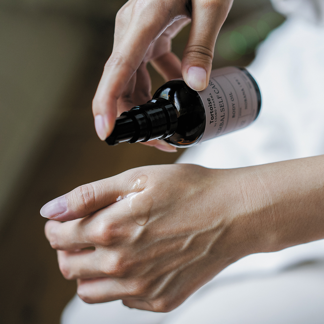 自然由来指数100%のボディオイルは、キャリアオイルから植物エキス、香料まで全て植物由来の成分でできています。 MCTオイルやスクワラン等をベースにした浸透性の高いオイルです。 アウトバスの保湿やマッサージオイルなど様々なシチュエーションで使用でき、スキンケアからヘアスタイリングまで対応したオールインワンなオイル。 トウキンセンカやヨモギ等、使用されている植物エキスは全て長野で有機栽培されたもので、安心できるボタニカルでオーガニックな処方です。 フレグランス:樹木 容量:50ml 商品サイズ:直径4.5㎝×高さ12㎝ 成分:トリ(カプリル酸/カプリン酸)グリセリル、マカデミア種子油、スクワラン、コメ胚芽油、トウキンセンカ花エキス、 カワラヨモギエキス、カンゾウ根エキス、ローズマリー葉エキス、トコフェロール、精油 使用シーン ボディケア/ ヘアケア/ アウトバスオイル/ マッサージオイル/スタイリング
