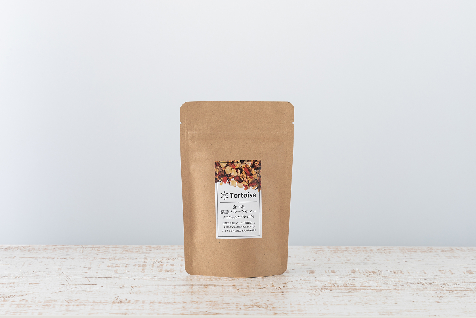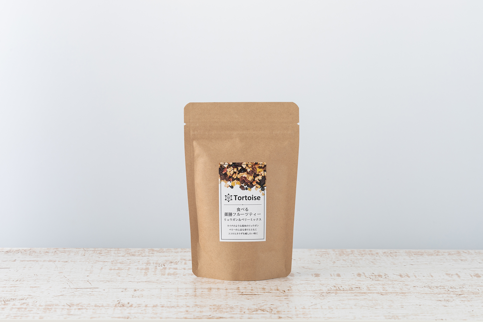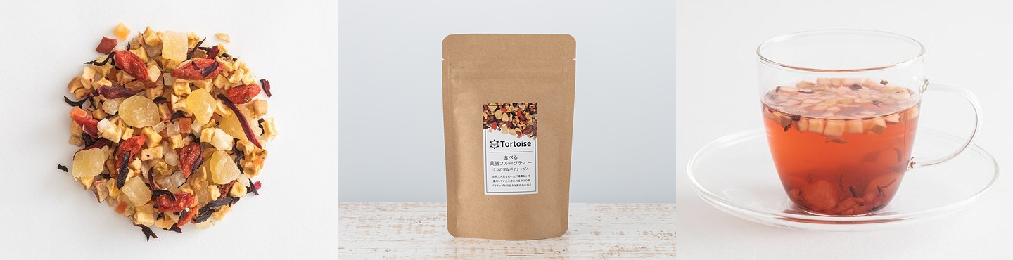 漢方の原料として有名な食材に ドライフルーツをミックス。 お茶として飲むのはもちろんですが、 フルーツも全部食べることができます。